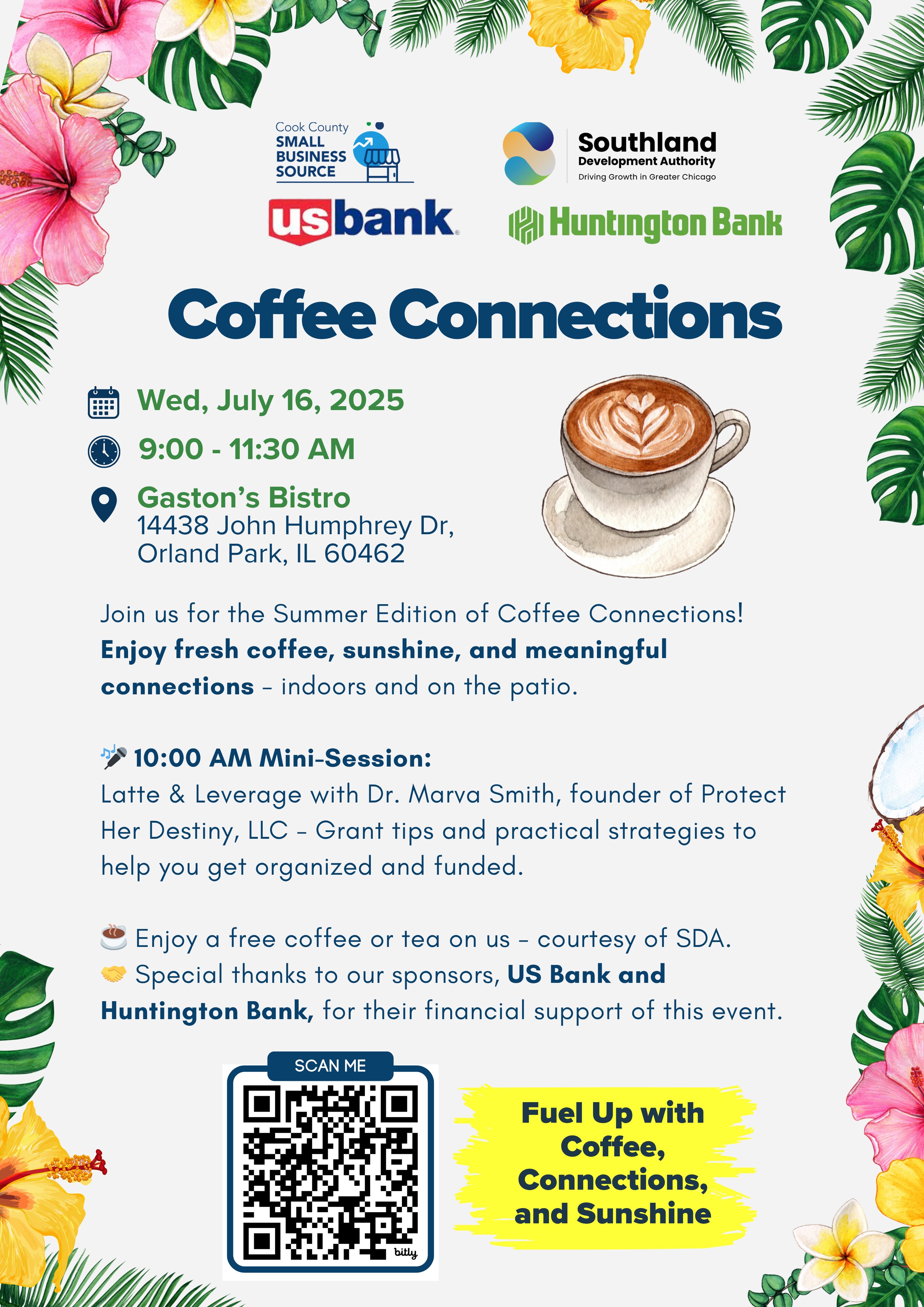 Únase a nosotros en la edición de verano de Coffee Connections. Mezclaremos networking, sol y estrategia en una mañana refrescante.