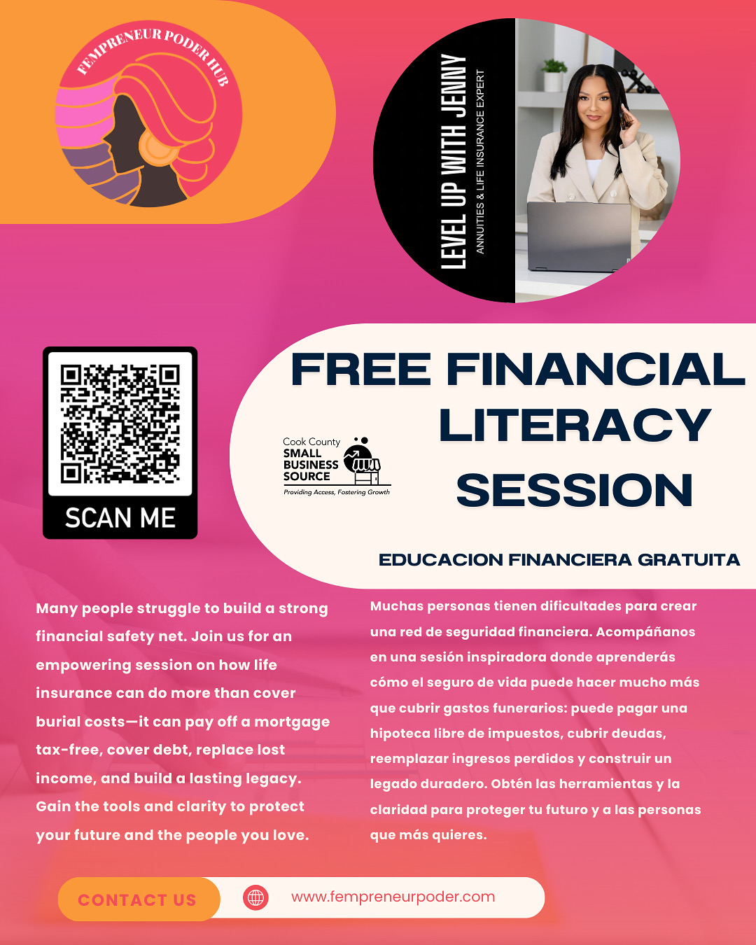Muchas personas luchan por construir una sólida red de seguridad financiera. Únase a nosotros el sáb. 30 de agosto con Level Up with Jenny para una sesión de empoderamiento sobre cómo el seguro de vida puede hacer más que cubrir los costos de entierro, puede pagar una hipoteca libre de impuestos, cubrir la deuda, reemplazar la pérdida de ingresos, y construir un legado duradero. Obtenga las herramientas y la claridad para proteger su futuro y a las personas que ama. Inscríbase en este evento hoy mismo.