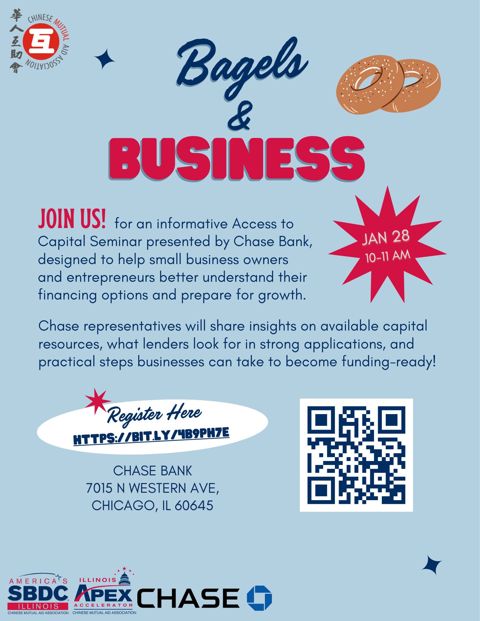 Chase representatives will share insights on available capital resources, what lenders look for in strong applications, and practical steps businesses can take to become funding-ready!