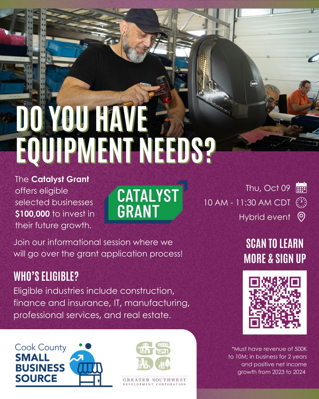 The catalyst grant offers eligible selected businesses 100,000 to invest in their future growth. Join our informational session where we will go over the grant application process. Eligible industries include Construction, Finance and Insurance, IT Tech , Manufacturing, Professional Services and Real estate.