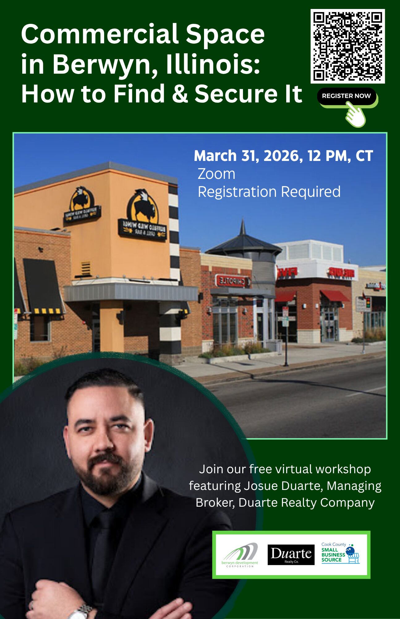 Looking for the right space for your business? Join commercial real estate expert Josue Duarte to learn the basics of finding, evaluating, and securing a commercial property.