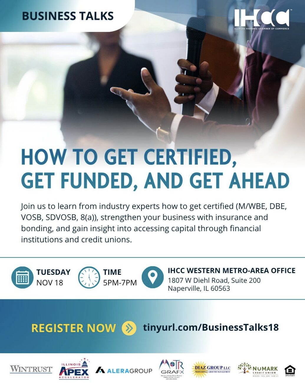 Join us to learn how to get certified, strengthen your business with insurance & bonding, and access capital through lenders.