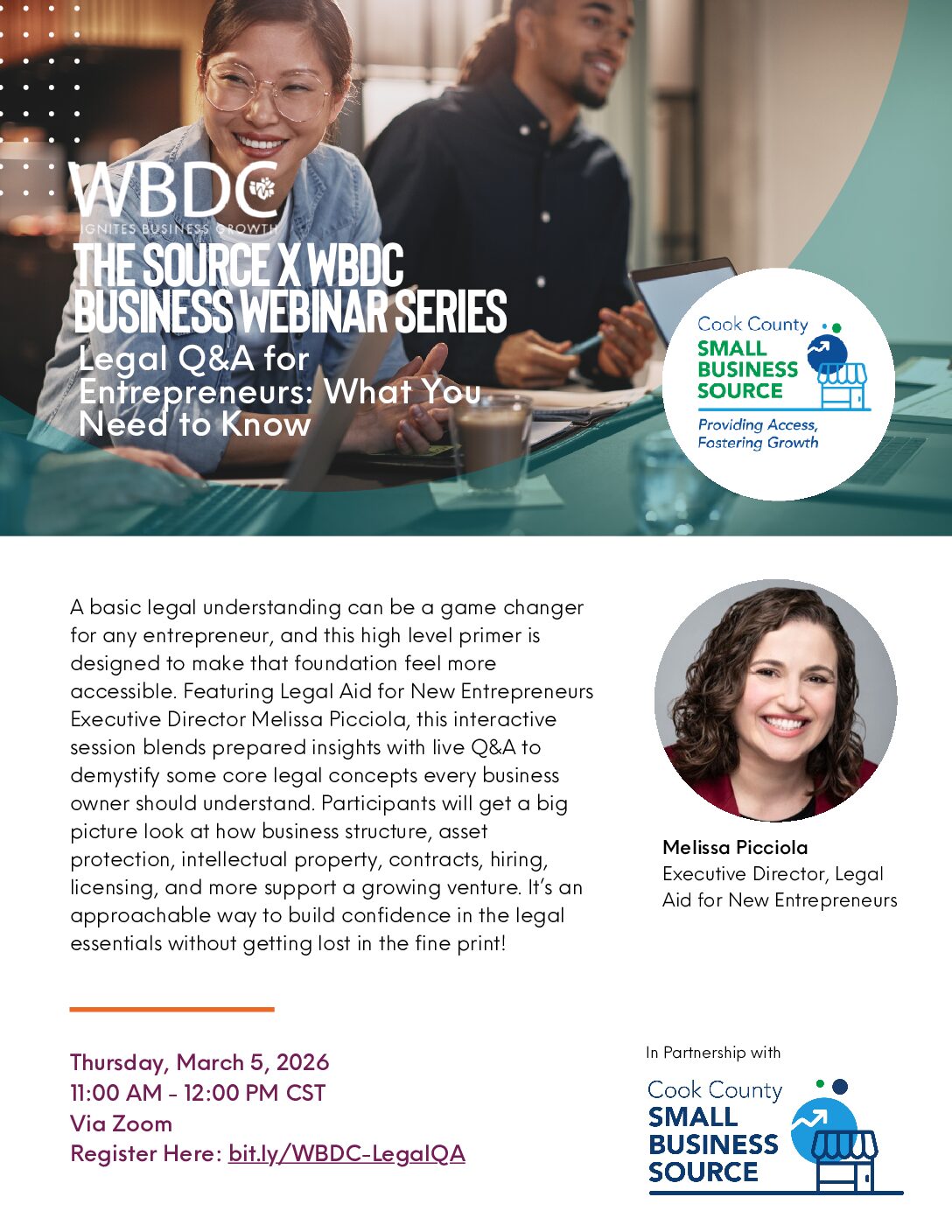 Home Events - Cook County Small Business Source Legal assistance Legal Q&A for Entrepreneurs: What You Need to Know