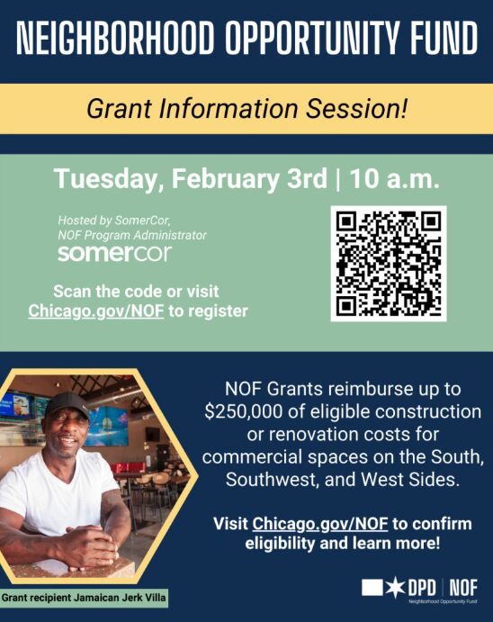 The Neighborhood Opportunity Fund (NOF) provides capital development grants up to $250,000 for small business and cultural projects located along West, Southwest, and South Side commercial corridors. NOF grants are provided as reimbursement for up to 75% of eligible project expenses with a maximum grant of $250,000. Applicants may qualify for additional funding for Technical Assistance.