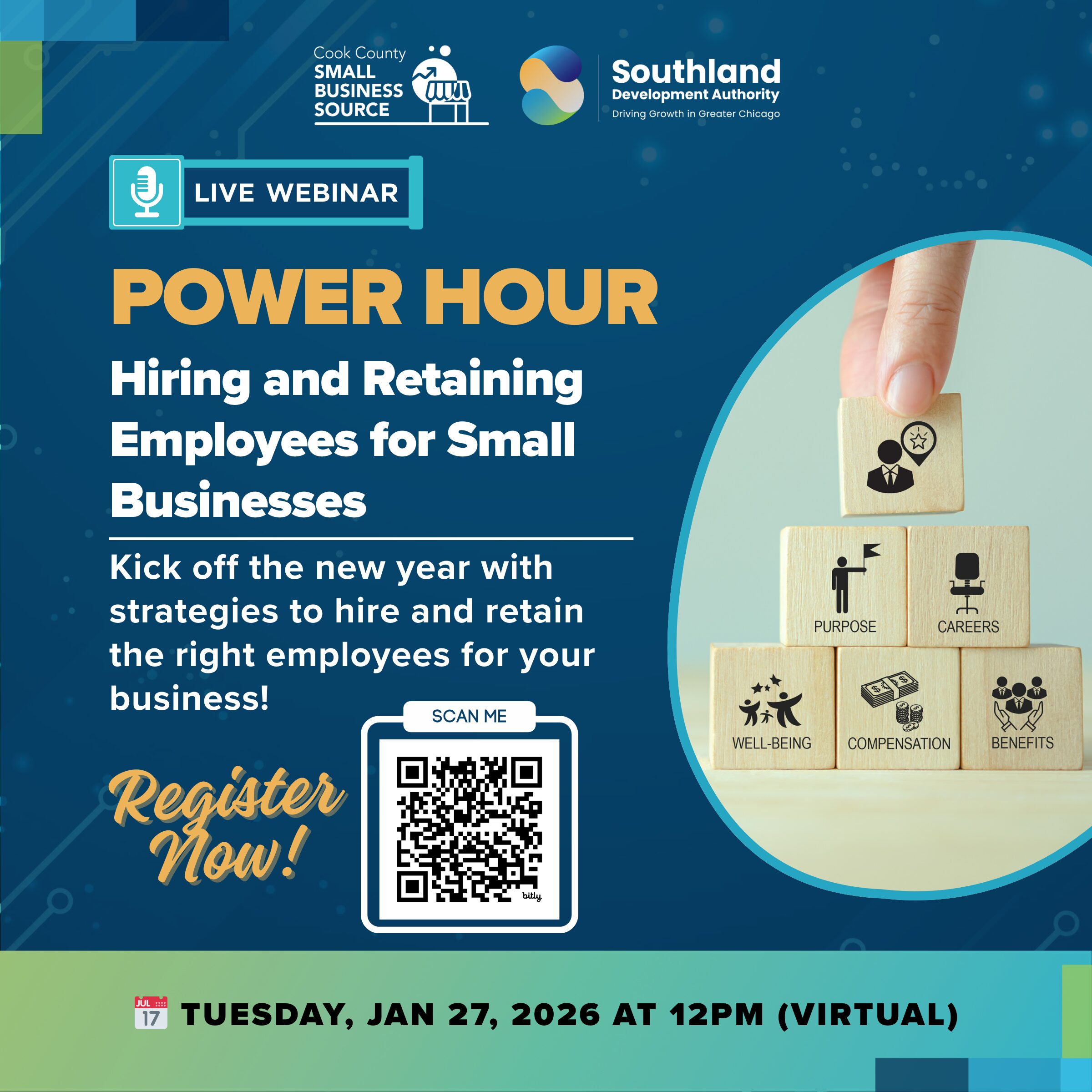 The Southland Development Authority invites you to Power Hour #6, a virtual session designed to help local business owners and entrepreneurs navigate staffing challenges in 2026.
