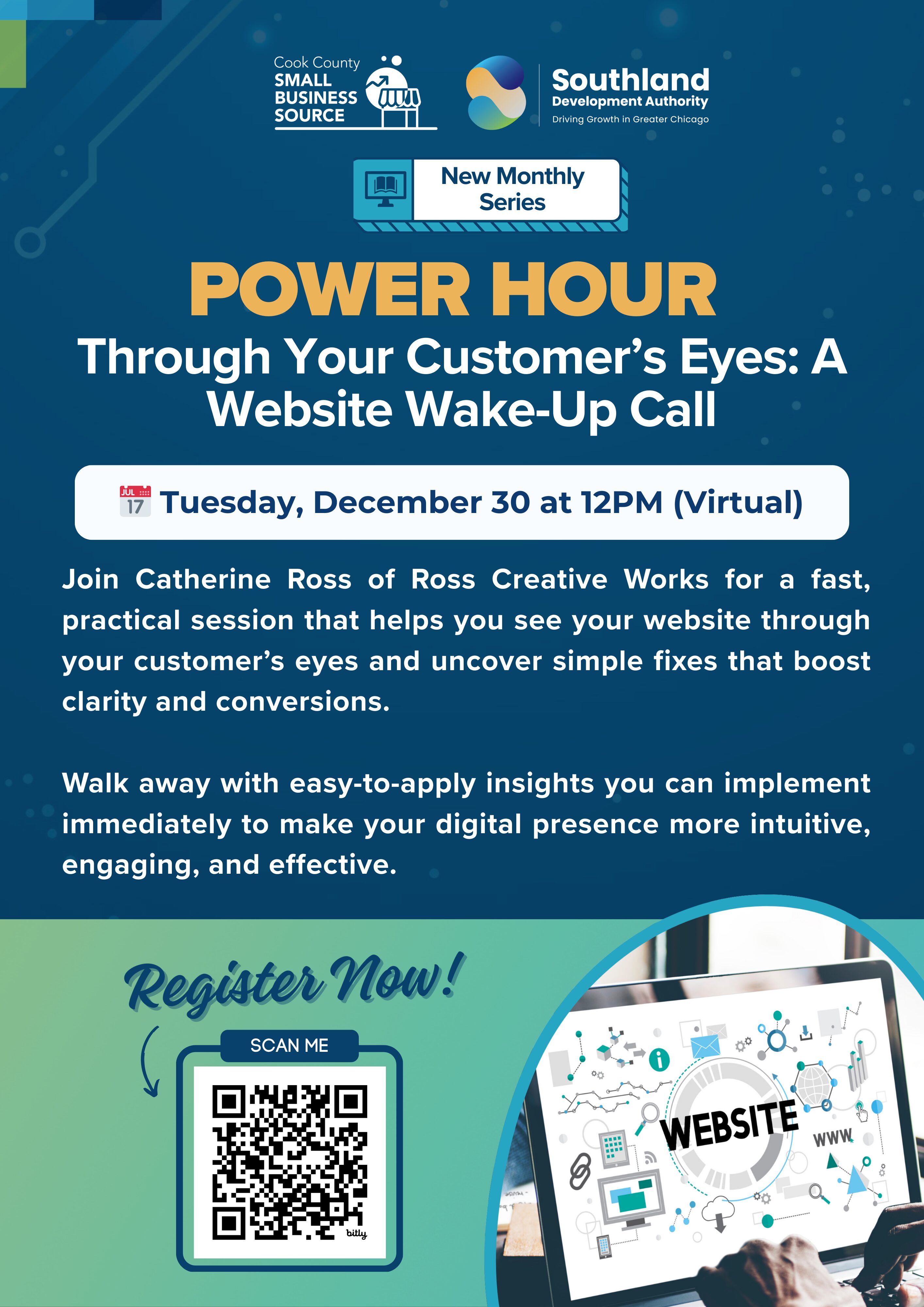 Home Events - Cook County Small Business Source Marketing support Power Hour : “Through Your Customer’s Eyes: A Website Wake-Up Call”