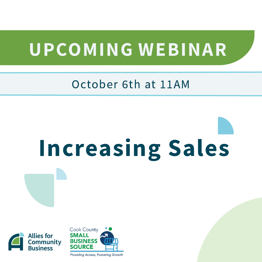Join A4CB’s next free coaching webinar for tips on how to increase your sales. In this webinar, A4CB Senior Business Coach Leticia Segura will cover topics including building brand loyalty, testing and improving products, recognizing customer needs, retaining customers, and more.