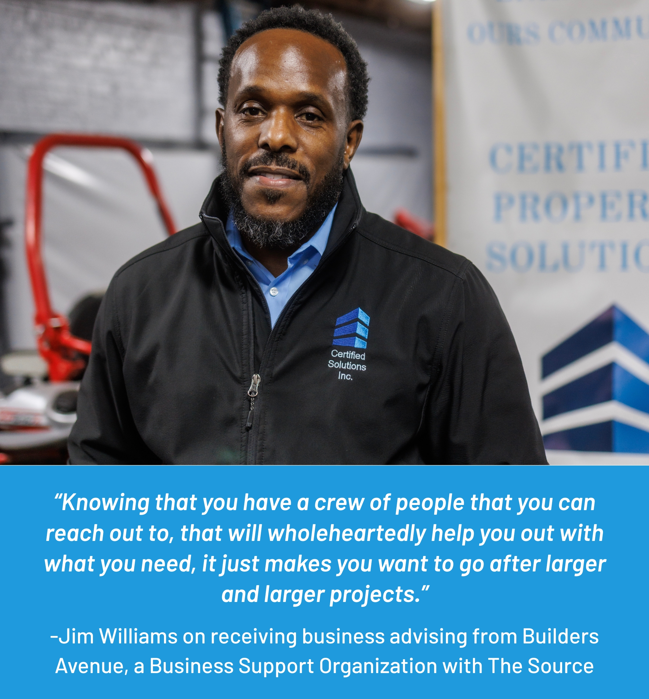 His life is less hectic, however, thanks to business advising from Builders Avenue, one of The Source’s 13 Business Support Organizations (BSOs).